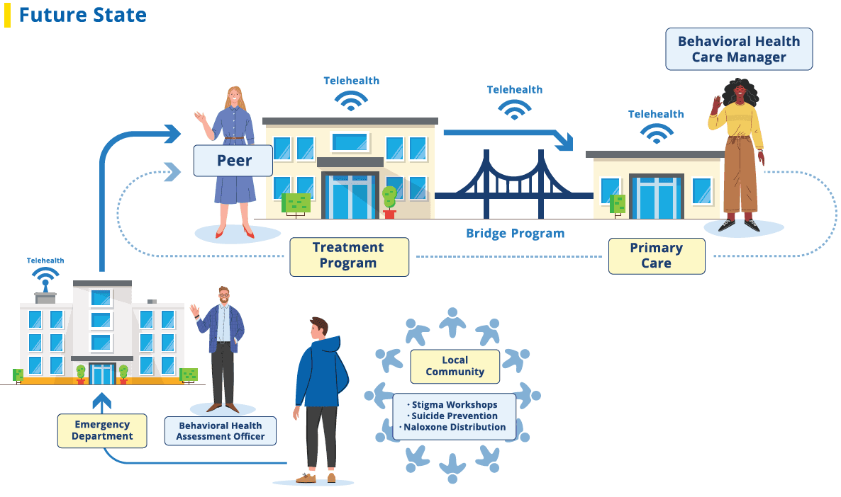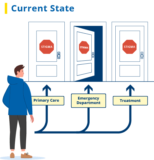 Meet patients where they are already presenting for care and engage them in treatment, making sure the human connection to the system of care is never broken.